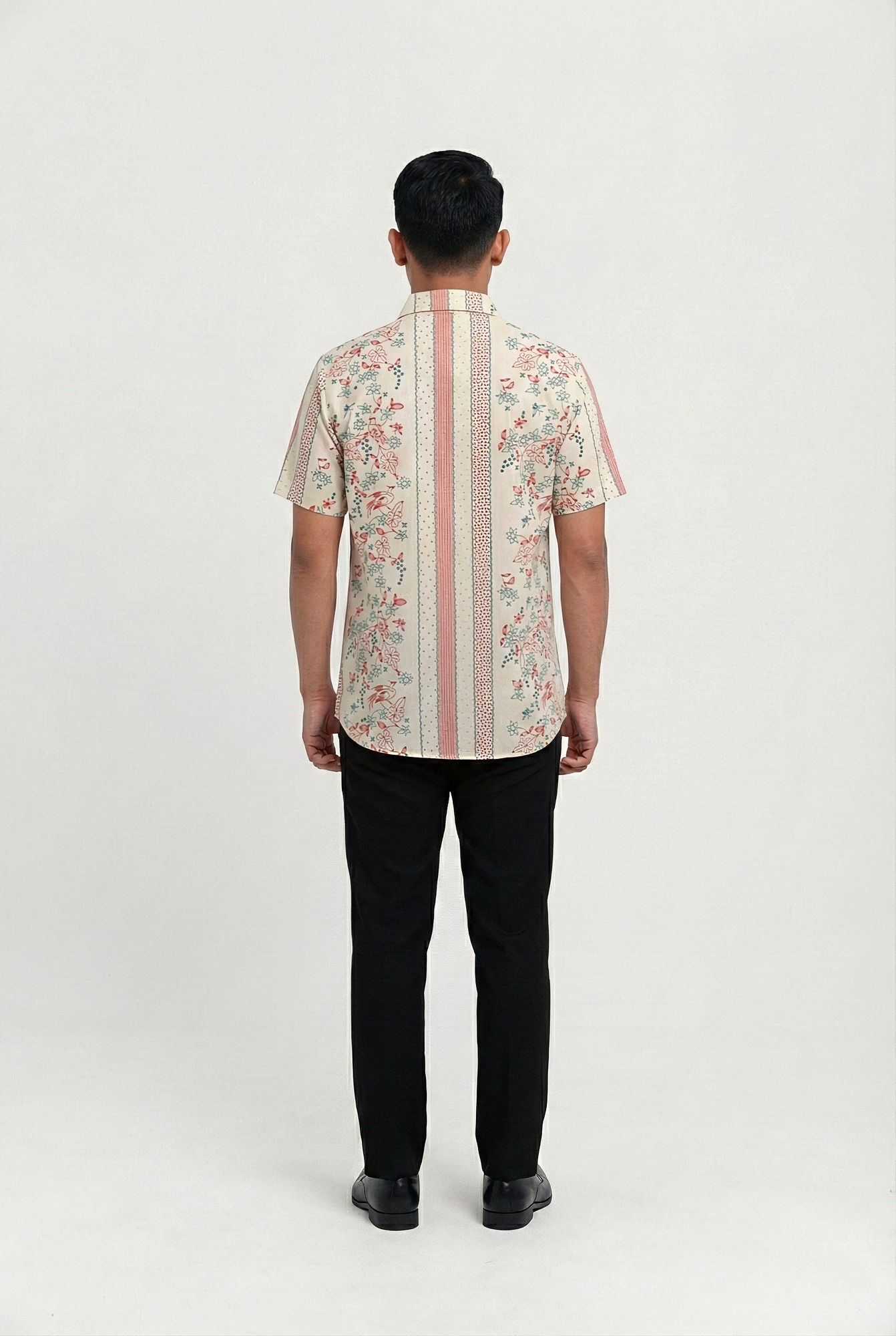 This short-sleeved slim-fit shirt features the refined Ramya motif for a clean, contemporary look. Designed to sit close to the body, it offers a modern silhouette that remains comfortable for everyday wear. A versatile piece that elevates casual and smart-casual styling with subtle cultural character.
