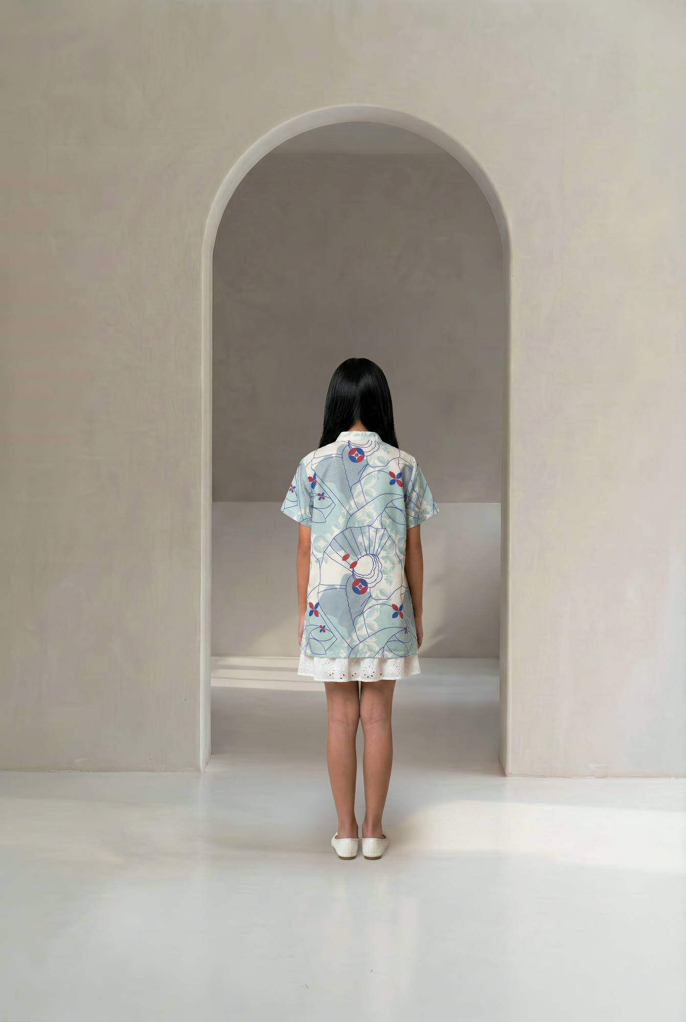 The Veil Girls Top features soft pleat details at the chest, creating a sweet and charming silhouette. Crafted from breathable Tencel Dobby made of 100% Lyocell, it is adorned with the Dahayu and Kawung motifs for a refined heritage touch. Designed for comfort and style, itβs perfect for both festive occasions and everyday wear.