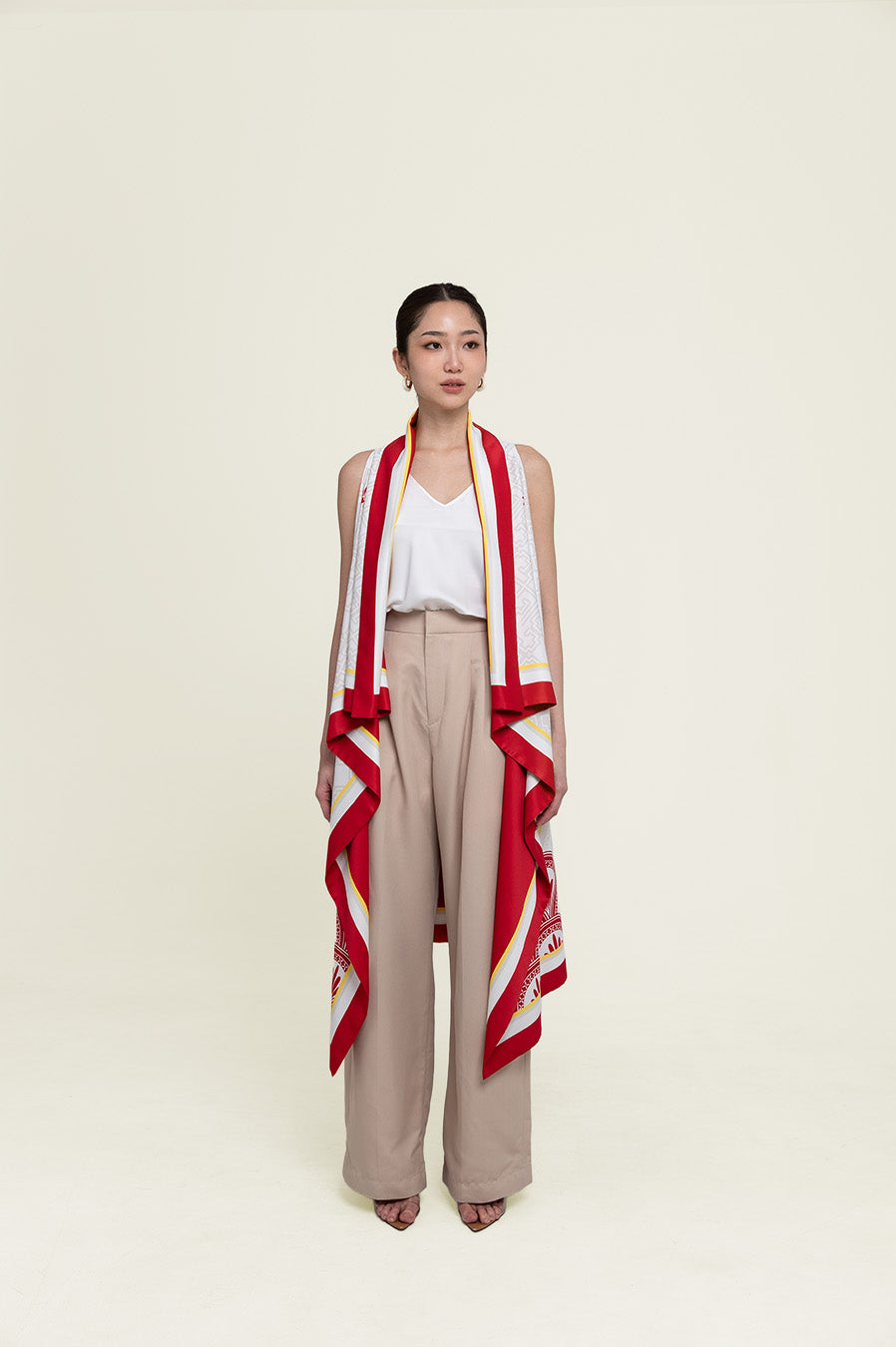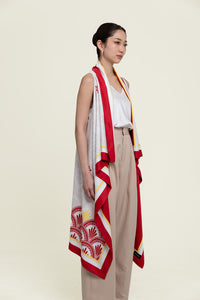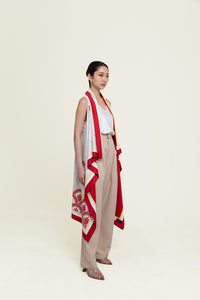 The Long Cape Asmaraloka features the iconic Asmaraloka pattern in a flowing, elongated silhouette. Designed to drape beautifully, this cape creates an elegant statement and adds visual impact to any outfit. A versatile layering piece that elevates festive and formal looks with effortless sophistication.